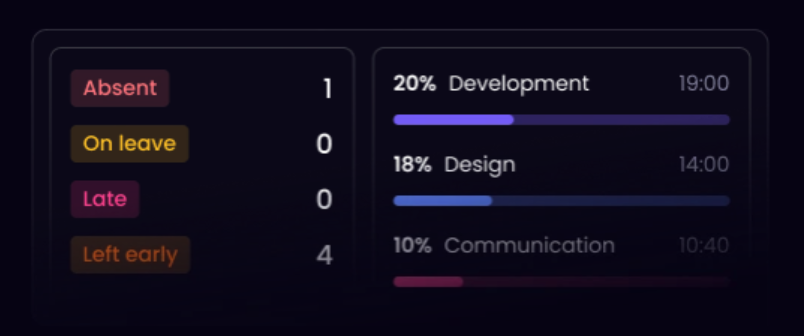 WebWork AI runs Smart Monitoring to detect anomalies, burnout, overload, irregular activity, and attendance risks based on existing data.