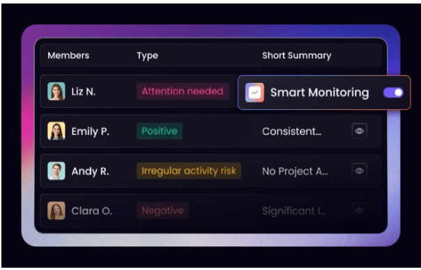 WebWork Smart Monitoring silently checks minute-by-minute activity data for every employee, every day, and comes back with what’s worth knowing—without being asked.